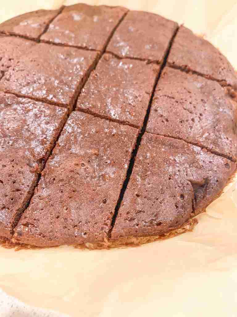 - Line a 9-inch round cake pan with parchment paper or lightly grease it with butter.