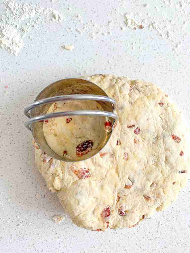 - Use a small biscuit cutter to cut out 5-6 biscuits using a straight up and down motion, don’t twist the cutter when cutting them out.