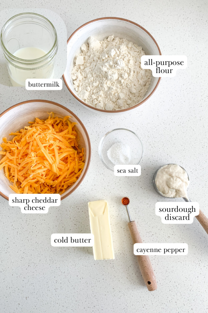 - Add flour, salt, cayenne pepper, and shredded cheese to a mixing bowl. Stir to evenly mix.