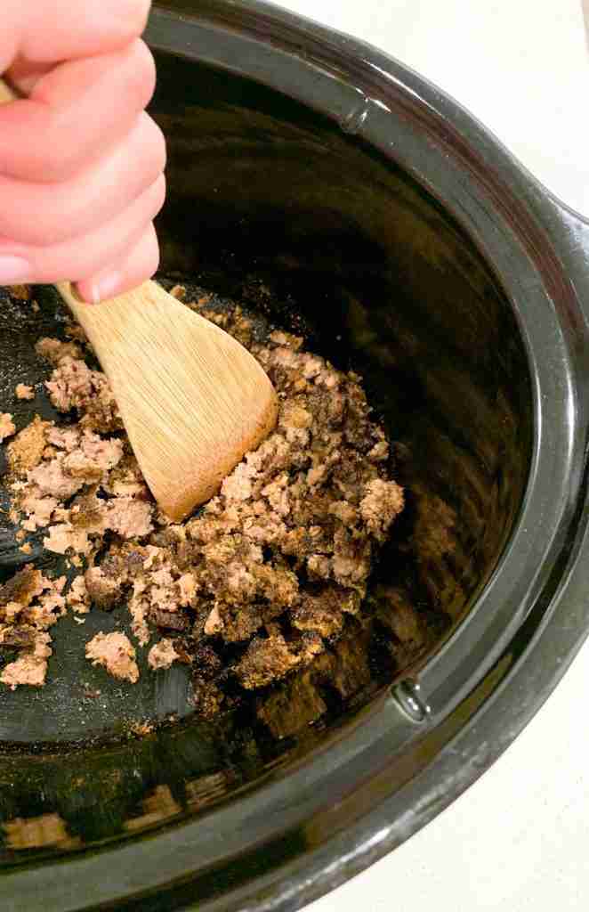 You can cook ground beef in a skillet instead of a slow cooker if you prefer. Simply toss the same ingredients into a skillet and cook over medium for 10-12 minutes or until fully cooked.